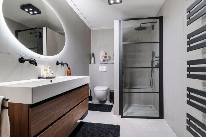 - Inloopdouche, toilet, vloerverwarming, en wastafelmeubel