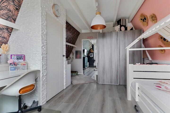 De verdieping is voorzien van een in moderne kleurstelling uitgevoerde laminaatvloer.
